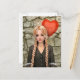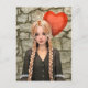 3D digital render of a beautiful teenager girl in a retro dress holding a balloon in a heart form on a stone wall background. Perfect Valentine's Day gift