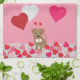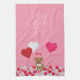 Valentines Day Illustrated Dog with Heart Balloons Kitchen Towel