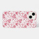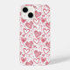 Features a lovely, playful pattern with different heart shapes, bows, and dots in a pink and white colour scheme. It has solid pink hearts, plaid-patterned hearts, striped hearts, and heart outlines with striped borders. There are also pink bows and scattered dots throughout the design, making it perfect for a romantic and festive theme, like for Valentine's Day