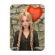 3D digital render of a beautiful teenager girl in a retro dress holding a balloon in a heart form on a stone wall background. Perfect Valentine's Day gift
