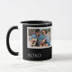 This design features modern minimalist black and white custom two photo coffee mug. Perfect gift for your girlfriend, wife, boyfriend or husband on valentines day. Photos and text are easily editable. If you need help with the customization of the product or need more products from this collection please message me via Zazzle.