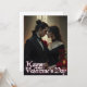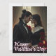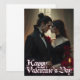A romantic, atmospheric picture showing the intense connection between two lovers on a mystical Valentine's Day. The elegant man in a dark suit and the woman in a stunning black dress stand close to each other, surrounded by red roses and the warm glow of a candle. The gloomy, gothic backdrop emphasizes the timeless and passionate atmosphere of this special moment of love.