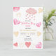 Invite your friends to a Valentine's Day party with these adorable pink and red invitation featuring watercolor hearts, envelopes, and glittery gold accents.