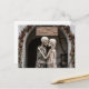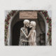 This unique Valentine's Day card features a romantic and whimsical illustration of two skeletons locked in a tender kiss, symbolizing a love that lasts beyond this life.
