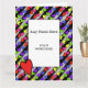 Bright coloured hearts stand out on a background of black and grey stripes. Add your photo. Inside asks "Will you Marry Me?"