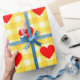 Valentine's Day Red Heart Yellow Gingham Pattern Wrapping Paper