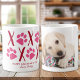XOXO ! Surprise your favourite dog lover with this adorable pet photo xoxo valentines mug with paw prints in a red and pink design .