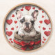 Valentines French Bulldog Round Paper Coaster