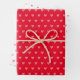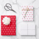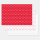 This set of wrapping paper sheets features a Valentine’s heart pattern on red and on white along with a plain white sheet of wrapping paper.