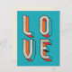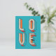 .: "LOVE" written on the front in a retro style in colour block styles sides and stiple front. Blank inside so you can add your own personal message by hand. Beautiful turquoise background and orange pink-red and ecru detail. Coordinating items are available in my store.