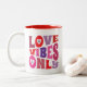 Valentines Love Vibes Only Red Pink Monogram Retro Two-Tone Coffee Mug