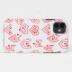 This phone case has a mid-century modern Valentine’s design of scattered red heart mazes on a field of white.