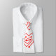 This necktie has a mid-century modern Valentine’s design of scattered red heart mazes on a field of white.