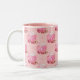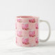 Cute Valentine's Day mug to give as a gift to Mom, your wife, girlfriend or your bff. The mug is pink in the background and has a pattern of pink coffee mugs with heart shaped cookies at the base. Inside each coffee mug you personalize it with the initial of the person it is for. And the best part is you only have to change it once and they will all change!