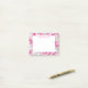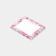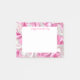 Post-it-Notes shown in a pink and white satin swirls print.