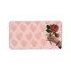 hand drawn and coloured ladies hand holding out a red rose of love and friendship, on a blush pink love heart shaped background Great gift for valentines day, anniversary, weddings or friendship. sgb01