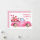 Delight a loved one with this unique and pretty Valentine's Day greeting. A watercolor of an old fashioned pink truck with hearts in shades of red and pink spilling out of its trunk is accompanied by the message "Sending You a Truckload of Love." You can personalize the truck's door with the recipient's or your name. On the backside, there is a pattern of the word "Love" in pink and red, with a white block in the middle where you can personalize the greeting (set to Happy Valentine's Day) and the signature.