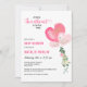 Valentines A little Sweetheart is on her way Baby Shower Invitation with watercolor pink heart balloons and florals with script calligraphy type.