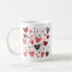 It features a collection of hearts in different tones of red accented with work -love- in an elegant script typography.