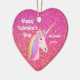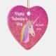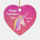 Valentines Unicorn Pink Glitter Personalized Ceramic Ornament