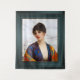 This is a beautiful portrait of a young lady wearing oriental style clothing of rich hues of cobalt blue, red and orange; with floral patterns of blue, red, green, yellow and brown.