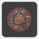 Valknut Symbol Black and Red Leather and gold Square Sticker
