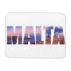 Malta text composed of view of sunset over Valletta old town and harbour, Valletta, Malta.