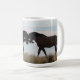 A lot like "courage in a cup". 15oz ceramic wild mustang mug, featuring stallions of the South Steens- Valour and Honour. Valour on the left is saying "no" to his bandsire, Honour, who thinks he's grown enough and should begin a band of his own. Photo by Mustang Meg of mustangwild.com