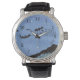 A twilight watercolor of a colony of bats emerging from their cave to do their night hunting under a starry sky adorns this cool Halloween watch!