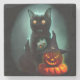 Vampire Cat and Wizard Pumpkin Halloween Surreal Stone Coaster