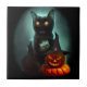 Vampire Cat and Wizard Pumpkin Halloween Surreal Tile