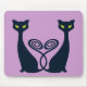 Classic retro black cat silhouette duo with spiral tails that come together in a heart. Slanted green eyes. High cheekbones and bat ears.