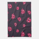 Vampire lips kitchen towel with a fun pattern of bright pink mouths with vampire teeth over dark purple background. This dark fanged pattern is great for Halloween.