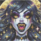 Halloween stickers. Female vampire with gold eyes and teeth and sparkles in her hair. Gold fangs, pale skin. Cool for Halloween or anyone who loves vampires.
