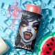 Halloween can cooler. Female vampire with gold eyes and teeth and sparkles in her hair. Gold fangs, pale skin. Cool for Halloween or anyone who loves vampires.