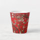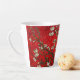 Latte Mug featuring Vincent van Gogh’s oil painting Almond Blossoms (1890) in red. An almond tree blossoms white flowers in front of a red sky. A great gift for fans of impressionism and Dutch art.