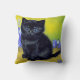 Pillow featuring a black cat in the style of Vincent van Gogh! This blue eyed darling sits adorably with purple flowers against a green wall and yellow table. A wonderful gift for cat lovers and Dutch art collectors!