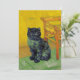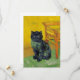 Card featuring a black cat in the style of Van Gogh! This black kitty sits by a chair upon a green floor against a background of Starry Night decoration. A fabulous gift for cat lovers and Dutch art collectors!