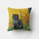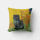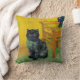 Pillow featuring a black cat in the style of Van Gogh! This black kitty sits by a chair upon a green floor against a background of Starry Night decoration. A fabulous gift for cat lovers and Dutch art collectors!