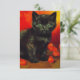 Card featuring a black kitten in the style of Vincent van Gogh! This fluffy kitty poses with red flowers. The purr-fect gift for cat lovers and Dutch art collectors!