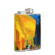 Flask featuring Vincent van Gogh’s oil painting Café Terrace at Night (1888). Yellow stars paint the blue night sky above an outdoor café in France. A marvellous gift for fans of Post-Impressionism and Dutch art.
