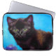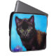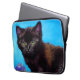 Laptop Sleeve featuring a cat and flowers in Van Gogh style! A black cat poses with purple flowers. A purr-fect gift for cat lovers and Dutch art collectors!