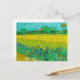 Postcard featuring Vincent van Gogh’s oil painting Field with Irises Near Arles (1888). Beautiful blue irises decorate the golden fields in Arles, France. A marvellous gift for lovers of Post-Impressionism and Dutch art collectors!