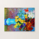 Puzzle featuring Vincent van Gogh’s oil painting Flowers in a Blue Vase (1887). Beautiful flowers of various colours are arranged in a blue vase: red, purple, white, blue, yellow, red, orange. A wonderful gift for fans of Post-Impressionism and Dutch art.