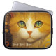Laptop sleeve featuring a colourful painting of a cute kitty in van Gogh style. The text is optional.