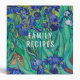 Van Gogh "Irises" family recipes cookbook binder. Blue floral impressionism art.