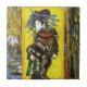 Van Gogh Japonaiserie Oiran tile. Oil painting on canvas from 1887. Japonaiserie Oiran is Van Gogh’s beautiful depiction of a Japanese oiran in the style of Kesai Eisen. The oiran were courtesans who wore ornate costumes and served as entertainers performing music and tea ceremonies. Van Gogh’s Oiran wears a fancy black, green and red kimono with her hair done up with intricate blue pins. The woman is surrounded by an ornate nature border featuring water reeds, lily pads, frogs, and cranes. A beautiful gift for fans of Vincent Van Gogh, Japonism, and French art.