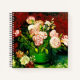 Notebook featuring Vincent van Gogh’s oil painting Bowl with Peonies and Roses (1886). Beautiful pink and white peonies and roses sit in a green vase against a red background. A wonderful gift for fans of Post-Impressionism and Dutch art.
