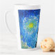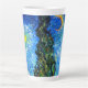 Latte Mug featuring Vincent van Gogh’s oil painting Road with Cypress and Star (1890), also known as Country Road in Provence by Night. People walk along a road passing a beautiful cypress tree underneath a blue night sky with yellow moon and stars. A fantastic gift for fans of Post-Impressionism and Dutch art.
