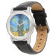 Watch featuring Vincent van Gogh’s oil painting Road with Cypress and Star (1890), also known as Country Road in Provence by Night. People walk along a road passing a beautiful cypress tree underneath a blue night sky with yellow moon and stars. A fantastic gift for fans of Post-Impressionism and Dutch art.